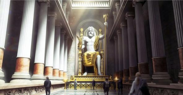 Также среди статуй можно было заметить в левой стороне скульптуры богини Адикия, дочери Зевса и Фемиды, богини несправедливости. Золотая статуя Гелиоса древнегреческого божества Солнца, также украшал этот зал. А скульптура Деймоса, сделанная из оникса — чёрного камня скорее устрашала. Но также на верхних этажах выделялась скульптура Зевса, изготовленная из алмазов. Алмазное изваяние по форме напоминала золотую скульптуру Зевса в Олимпии, восседающего на троне. А по обе стороны от него стояли две сапфировые скульптуры. Синий цвет сам по себе символизирует мудрость, если белый цвет алмазов символизировал могущество Зевса, то более малые скульптуры, справа Фемиды, той самой богини справедливости, а слева Нимизиды, её дочери — богини мести, символизировали свою философию.