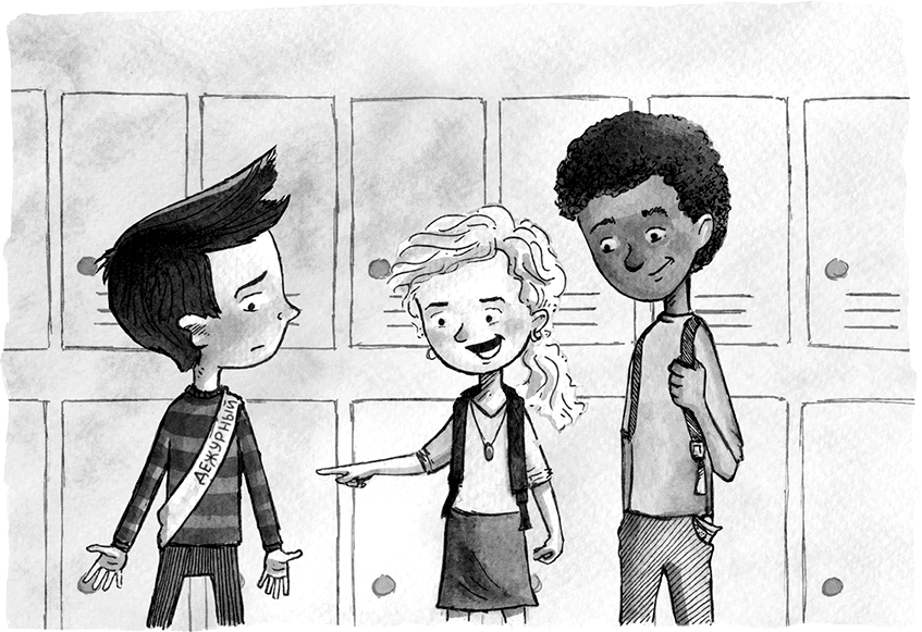 Было утро понедельника. Сэм и его лучшие друзья Антонио и Люси стояли около своих шкафчиков и ждали, когда прозвенит звонок.