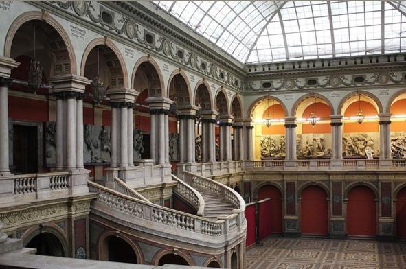 Центральный выставочный зал Музея прикладного искусства с копиями Пергамских мраморов на галерее