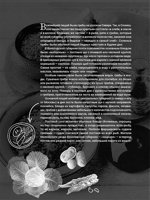 По сравнению с предыдущими книгами, которые носили или научно-популярный, или практический характер, книга «Постная грибная кухня: традиции и рецепты» затрагивает несколько новых для нас областей: исторический обзор развития грибного промысла и грибной торговли на Руси, путь грибов на православный стол (а отсюда и сами особенности русского православия), использование грибов в монастырской кухне, отношение к грибам разных народов Российской империи. Чтобы не допустить досадных ошибок, мы обратились к друзьям и специалистам, отлично разбирающимся в вопросах русской истории и русского православия, этнографам, а также к профессиональным источниковедам и библиотечным работникам.