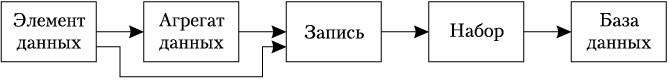 Структуризация данных базируется на использовании концепций «агрегации» и «обобщения». Один из первых вариантов структуризации данных был предложен Ассоциацией по языкам обработки данных (Conference on Data Systems Languages, CODASYL) (рис.2.1).