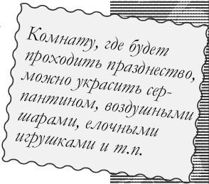 Главную комнату, где будет проходить празднество, украсьте серпантином, воздушными шарами, елочными игрушками и т. п.