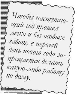 В первый день нового года запрещается делать какую-либо работу по дому – чтобы наступающий год прошел легко и без особых забот.