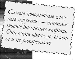 Самые новомодные елочные игрушки – пенопластовые расписные шарики. Они очень яркие, не бьются и не устаревают. Популярны и маленькие пластиковые Деды Морозы с плюшевым напылением – ими можно завешать всю елку сверху донизу и не покупать больше ничего.