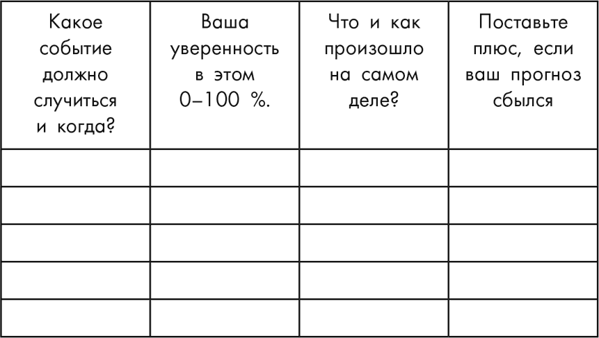 4. Поставьте плюс там, где ваш прогноз сбылся. Посмотрите, сколько наберется таких вариантов.