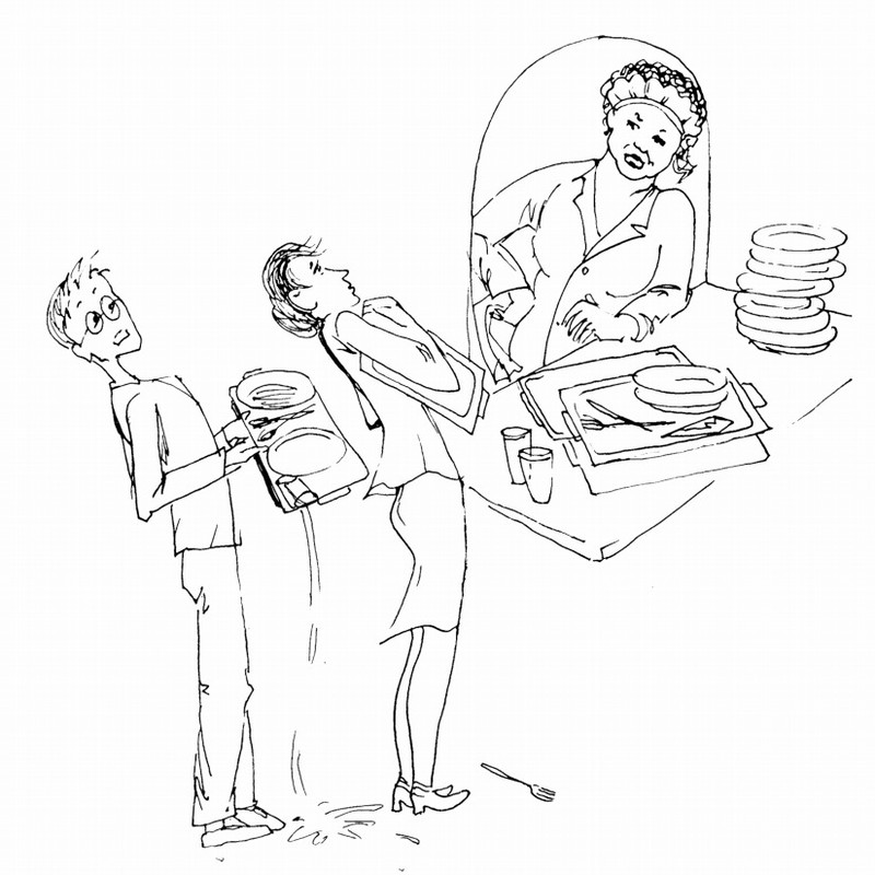 В Москве, на Газетном, где мы располагаемся, в лабиринте петляющих коридоров находится колоритная, пропитанная духом советского прошлого и уставленная соцатрибутами столовка. Там мы по-быстрому питаемся.