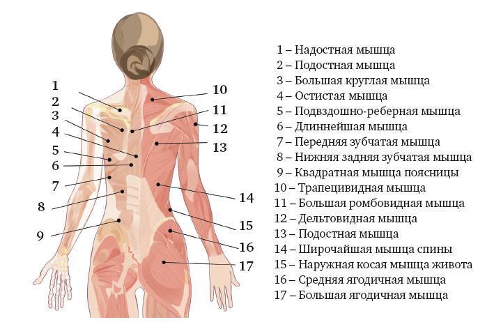 Рекомендуется тейпирование бедер, ягодиц, спины. При большой груди – грудных мышц.