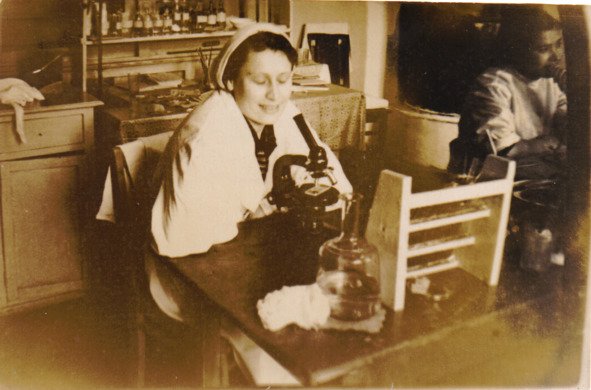Бабушка училась в церковно-приходской школе, потом некоторое время в гимназии в Иркутске. Гимназию она не закончила, перешла на акушерско-фельдшерских курсы. Во время учебы бабушка жила в семье старшей сестры Мелитины. Тина вышла замуж за Сиверцева, и есть несколько фотографий этой молодой пары с обязательными дарственными надписями на обороте. Фотографий было мало, дорогие, и их не просто отдавали, как сейчас, а дарили.