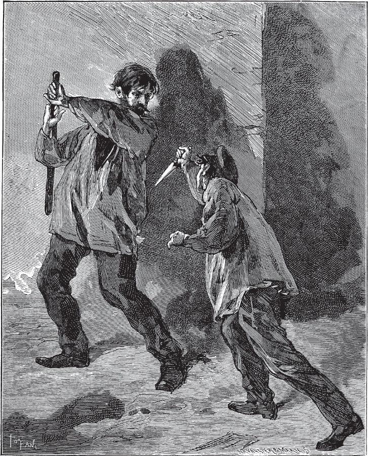 Физиономия у Николя была одновременно отталкивающей и свирепой; небольшого роста, тщедушный и щуплый, он мало походил на человека, способного заниматься опасным и преступным ремеслом. На беду, какая-то дикая нравственная энергия заменяла этому негодяю недостававшую ему физическую силу.