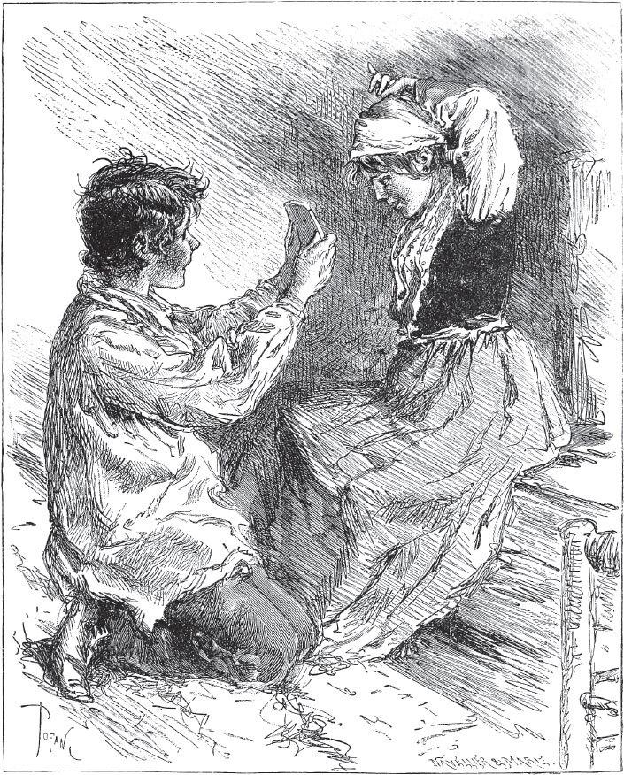 Прошло несколько минут томительного ожидания, и все это время девочка не сводила нетерпеливого и тревожного взгляда с двери; затем она с огорчением увидела, что на пороге показался Николя, будущий сообщник Крючка.