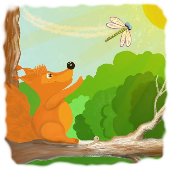 Когда Веснушка подросла, она сначала научилась ходить, а потом прыгать. Мама и брат выводили ее гулять. Гулять белочке очень нравилось. Ведь вокруг столько всего интересного! Огромные деревья с раскидистыми ветками, необъятные поляны и… серебристые стрекозки, которые так чудно летают, легко меняя направление, а также легкокрылые бабочки ярких расцветок. И еще много–много всего! Каждый день радовал Веснушку чем–то новым.