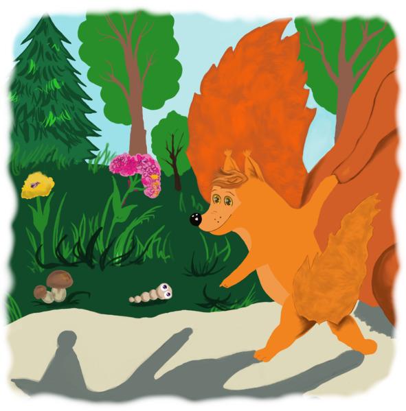 Сегодня, например, солнце светило как–то особенно. Очень яркое, оно слепило глаза — и белочка блаженно щурилась, идя с мамой на прогулку. И тут Веснушка обратила внимание на темное пятно, которое неотрывно следовало за ней. Это самое пятно было очень похоже на белочку — у него тоже был хвостик и ушки.