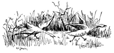 behind him; at least, he thought he could, but the noise he heard was the snapping of the twigs he trampled in his headlong flight. No greyhound ever bounded through a wood with lighter feet than those which carried him. His eyes were wide with fright. His heart beat so hard in his throat he thought he would surely die before he could reach the cabin. At every step the light seemed to be growing dimmer and the thicket denser, although he thought he certainly must have been running long enough to have reached the clearing. Still he ran on, and on, and on. The recollection of one of Mammy's stories flashed across his mind.