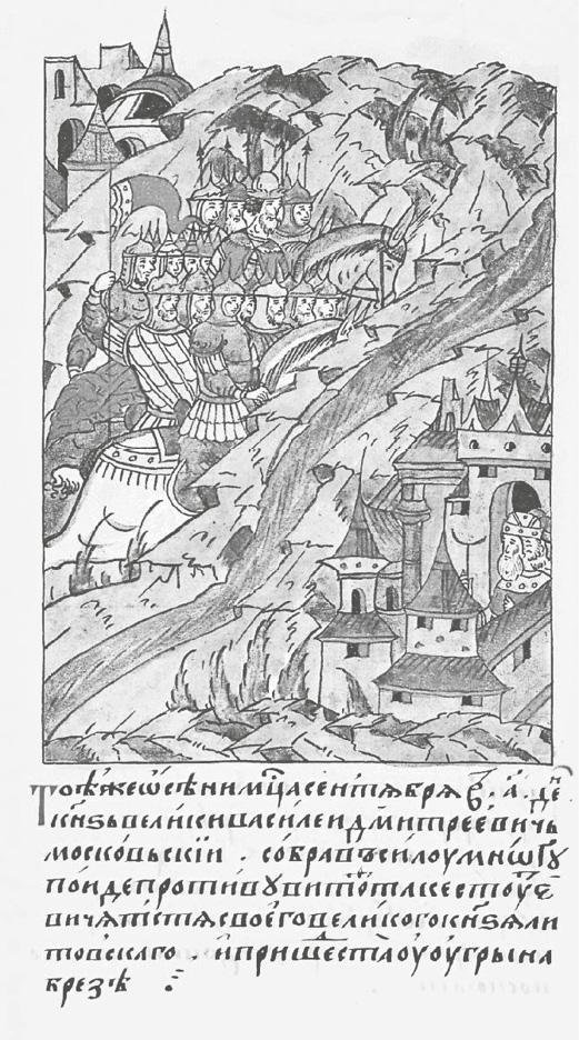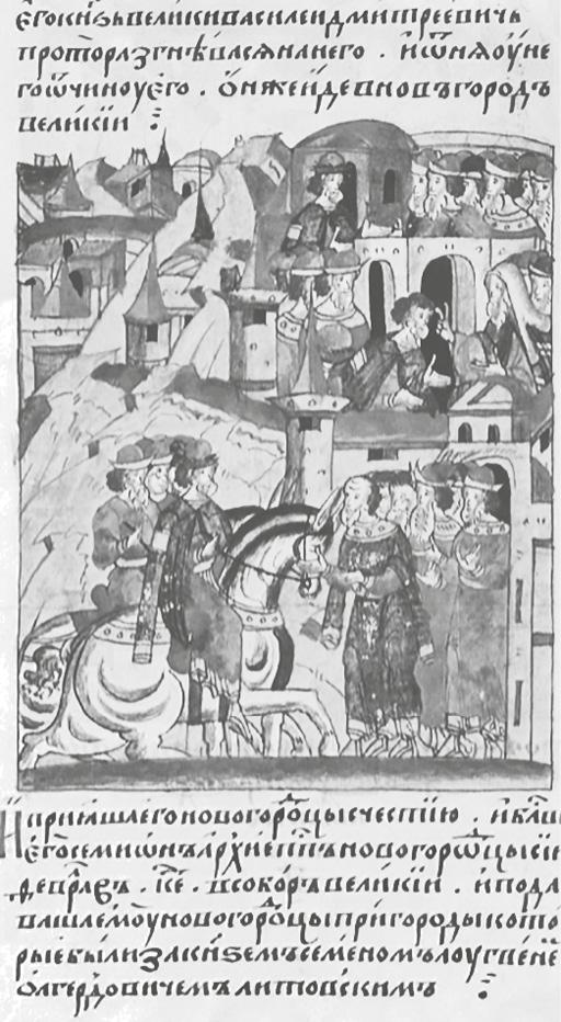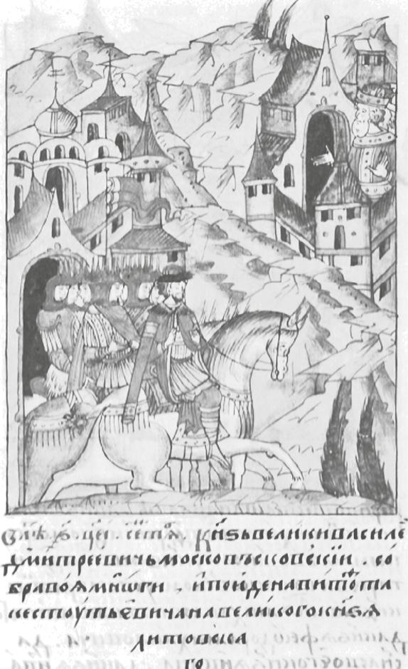 В средневековой Руси взрослели быстро: точно в таком же возрасте сам Дмитрий оспаривал великое княжение у своего будущего тестя. 30 апреля 1383 г. Василий отправился из Владимира вместе со старейшими боярами в Орду. Летописец по этому поводу записал: «Тое же весны апреля 23 князь великы Дмитреи Иванович посла въ Орду сына своего князя Василья из Володимеря въ свое место тягатися съ князем Михаиломъ Тферьскым о великомъ княженье, и поидоша на низ в судех на Волгу къ Орде»22.