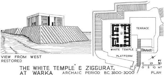 В то время Урук представлял собой лишь кучку соединенных между собой протоками и искусственными каналами деревень, в центре которых стоял храм богини Инанны, его называли Э-Ана. Позже рядом появились так называемый Белый храм – святилище бога Ану – и Красное здание – по мнению некоторых ученых, там заседали старейшины.