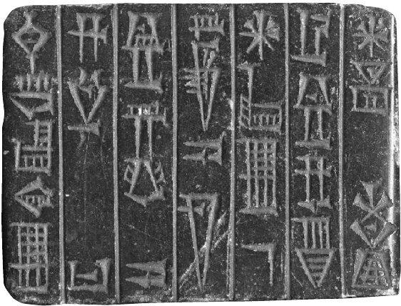 Лагаш в вертикальной клинописи времен царя Ур-Нанше. Ок. 2500 г. до н. э. Лувр. Париж, Франция