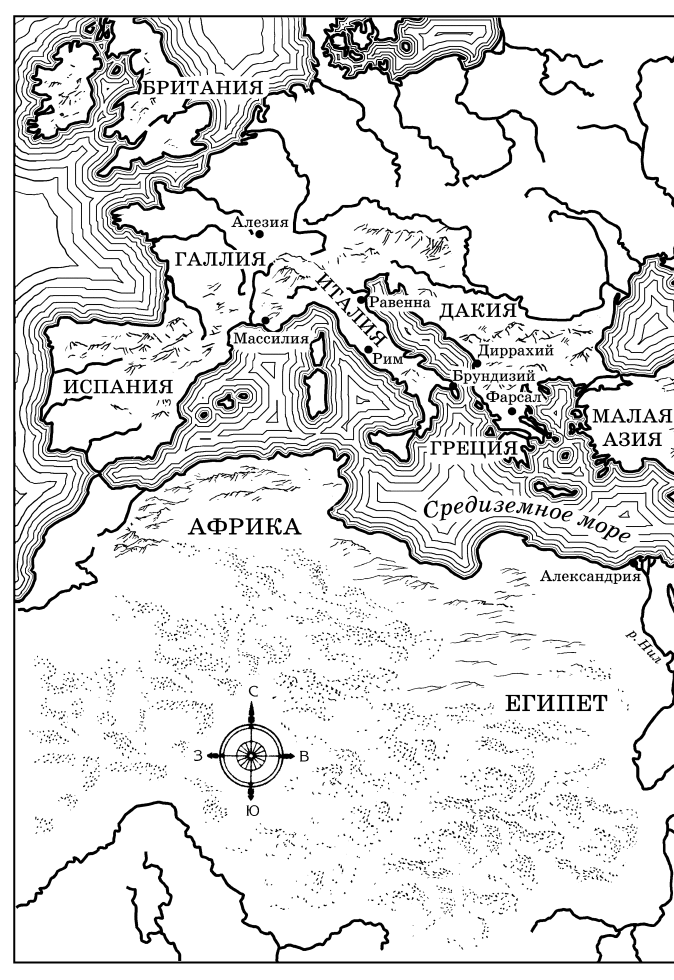 Второй залп — и нубийцы бегом устремились к когортам Цезаря. Не стесненные тяжелыми легионерскими доспехами, они все ускоряли бег, угрожающе выкрикивая боевой клич. Следом неслись бывшие солдаты Габиния — основная ударная сила. Вражеский строй насчитывал не меньше десятка рядов, в Цезаревом войске не набралось бы и пяти. Ромул, стиснув зубы до хруста, в очередной раз пожалел, что рядом нет Бренна.