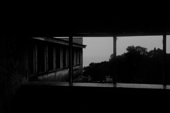 Сказать, что оно было очень высокое — это ничего не сказать. Мы обошли его со всех сторон, но входа нигде не было. Это и правда была просто огромная бетонная коробка. Мы все обходили и обходили, как вдруг с левой стороны его обнаружили проем. Хотя мы там не раз все смотрели. Мне стало искренне смешно, когда мы зашли внутрь. Почему? Там была лестница. Просто лестница, пущенная по краю стен. То есть, ничего больше. Она просто уходила наверх и все. Ни окон, ни перил.