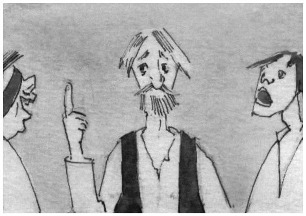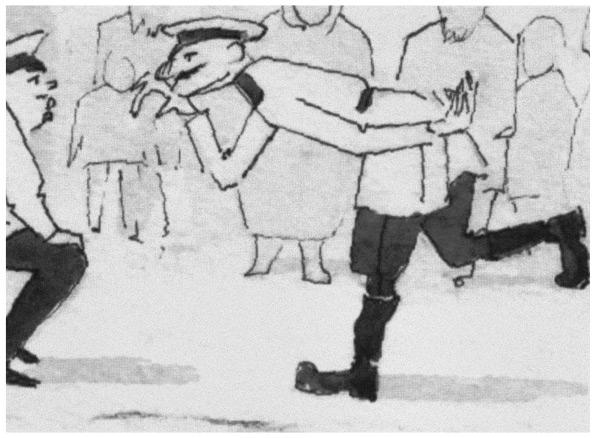 Фрагменты раскадровки рассказа А. П. Чехова «Хамелеон». Художник Г. Н. Данелия. 1956 г.