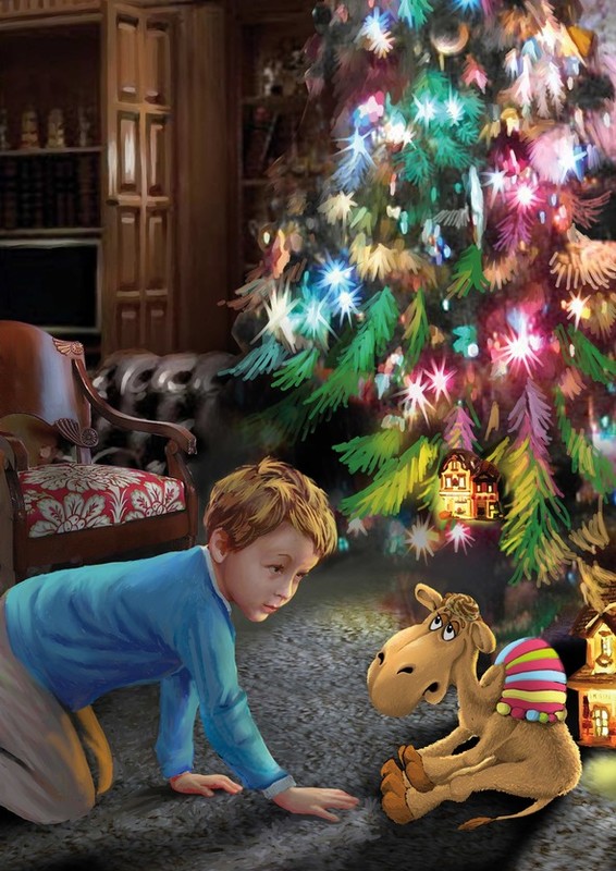 В день перед самым Новым годом в доме появился верблюд. Он сидел на полу под ёлкой и внимательно оглядывал комнату маленькими глазками из-под кудрявых бровей. На голове у него красовалась небольшая вязаная шапочка, из-под которой выбивались клоки рыжих волос.