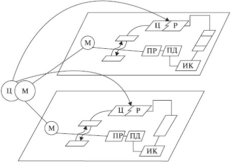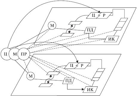 Рис. 3.Мультиплицированная структура деятельности с указанием связей между компонентами