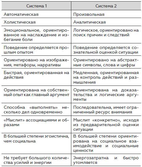 Подводя итоги в рамках данной работы о разделении нашего мышления на две системы как ключевого тренда оценки поведения, представим следующую условную таблицу: