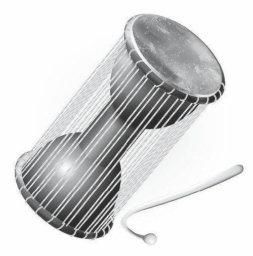 По форме корпус «говорящего барабана» похож на песочные часы из-за узкой «талии» посередине