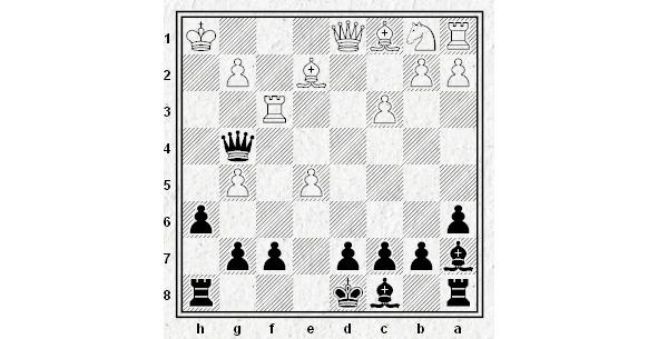 27. Ход белых. Найдите комбинацию с выигрышем ферзя.