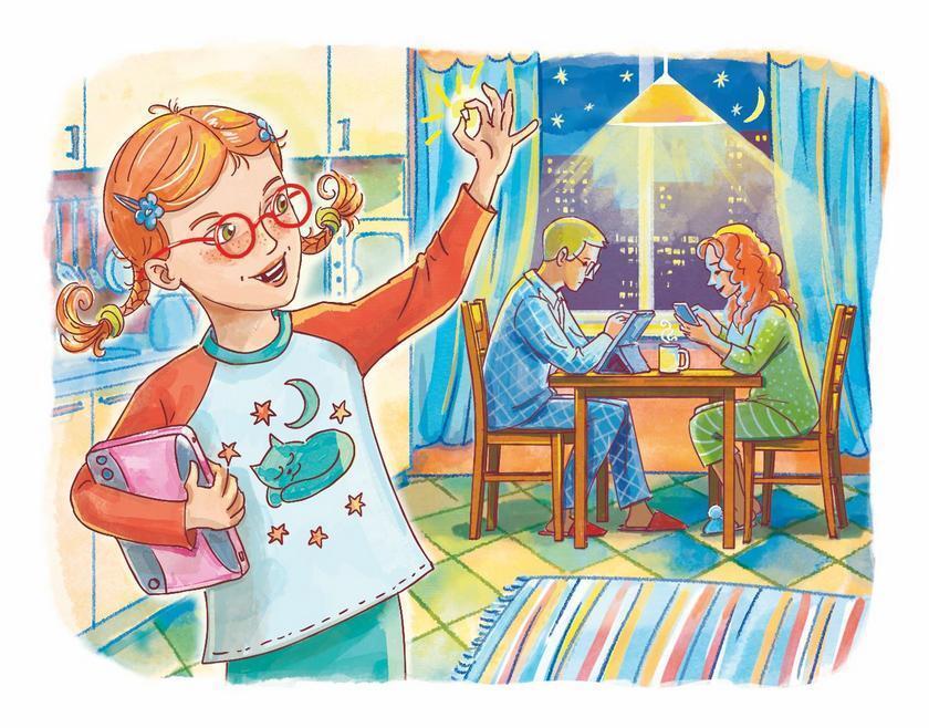 Она внимательно осмотрела прибор. Его индикатор показывал полный заряд! Значит, родители всё-таки вчера зарядили прибор, но совсем не помнят об этом!