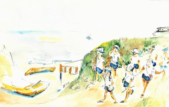 Купаемся подолгу, ловим маленьких песчаных крабиков, собираем ракушки. Иногда кому-нибудь из нас везёт, и счастливчик находит «чемоданчик» — ракушку с двумя створками с коричнево-рыжими разводами снаружи и белыми внутри. И чего только ещё интересного ни происходит на берегу моря. Возвращаемся к обеду «усталые, но довольные» — более точную фразу, чем эта, пусть сильно потёртую школьными сочинениями, придумать невозможно.