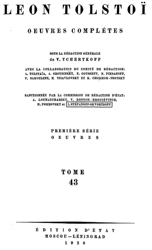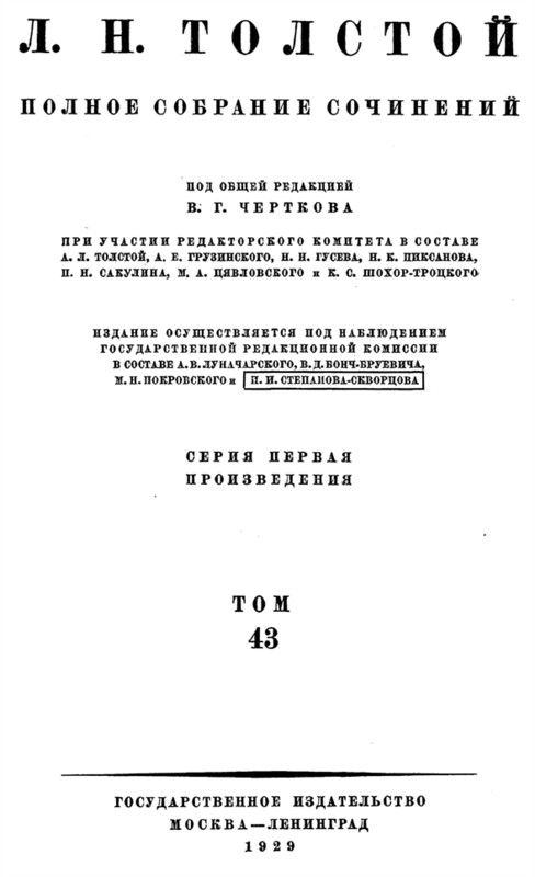 Полного собрания сочинений Л. Н. Толстого, предоставленной