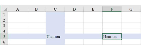Для начала необходимо научиться копировать данные ячейки и вставлять эти данные в другое место листа, например в ячейку F5.