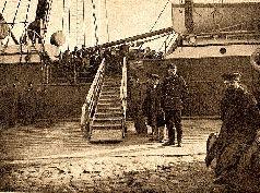 После обеда многие паломники, утомлённые впечатлениями дня, стали скрываться в своих каютах. Часов в восемь вечера выхожу я наверх. Качает. Довольно темно. Огни только в каютах и внизу в трюмах. На палубе умышленно не держат огня, чтобы не мешать вахтенным смотреть вперёд. Среди лежащих прямо на палубе паломников я с трудом пробираюсь к прогулочной площадке парохода.