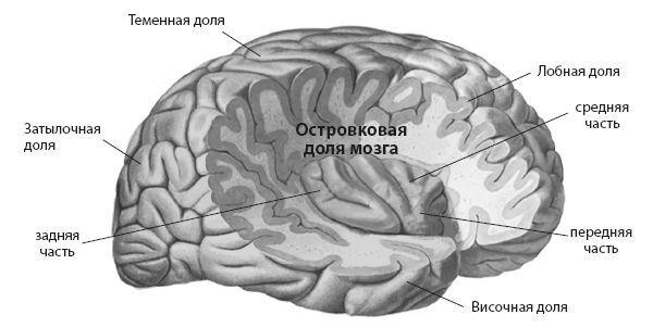 Островковая доля мозга только в последние годы стала центром внимания нейробиологов. Сейчас уже стало понятно, что эта доля мозга задействована во многих функциях организма. Она является важнейшим мозговым центром интеграции информации, помогает регулировать автономные непроизвольные функции вегетативной нервной системы человека и оказывает большое влияние на взаимодействие симпатической и парасимпатической нервных систем. Островковая доля мозга анализирует информацию, поступающую изнутри организма (интероцептивные импульсы), сравнивает ее со всеми остальными сенсорными данными, объединяет их и присваивает им определенный сигнал. Таким образом, островковая доля мозга – это «штаб-квартира» интероцепции.