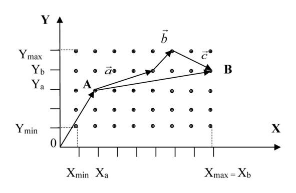 На рисунке 9 изображена эта ситуация. Вектор {AB} является целевым вектором, а остальные векторы — векторы задач. Со всей очевидностью можно отметить, что вектор цели является суммой векторов задач.