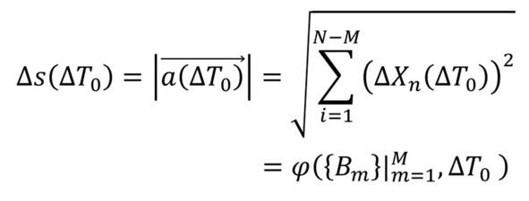 Выражение (6) показывает, что величина смещения объекта (обозначенная в соответствии со строкой 2 таблицы 1) в пространстве состояний за период непосредственного воздействия (обозначенного в соответствии со строкой 3 таблицы 1, далее по тексту будет просто указываться номер строки таблицы 1 в формате см. к/1, где к — номер строки, 1 — номер таблицы) по всем параметрам, по которым не происходит взаимодействия (N — M), определяется всей совокупностью параметров M воздействия, по которой (совокупности параметров) происходит взаимодействие объекта и источника воздействия.