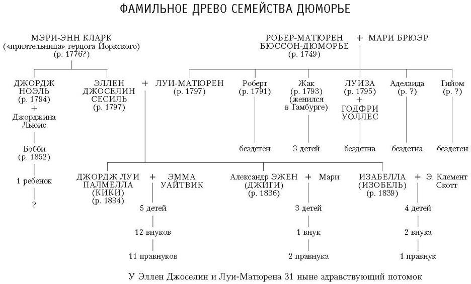 Всем ныне здравствующим потомкам Луи-Матюрена Бюссона-Дюморье и его жены Эллен Джоселин Кларк (их, по моим сведениям, тридцать один человек) посвящаю, с искренней приязнью, этот очерк семейной истории.