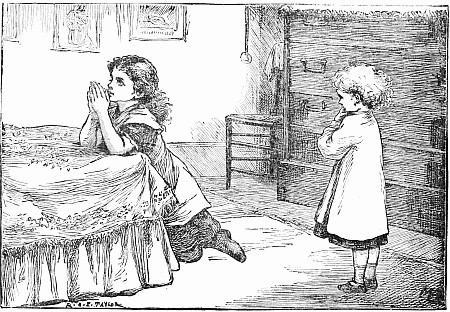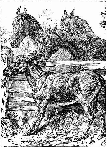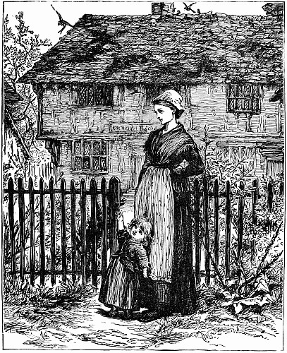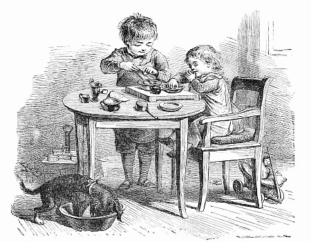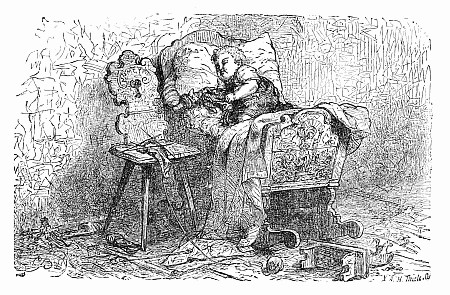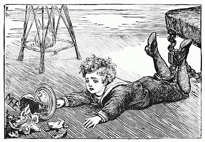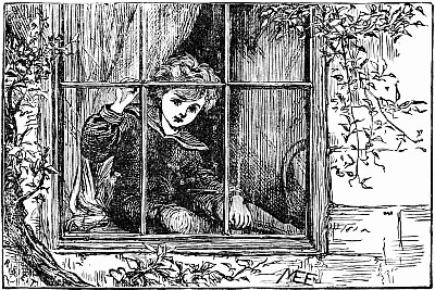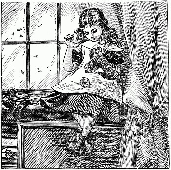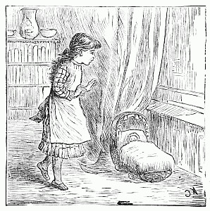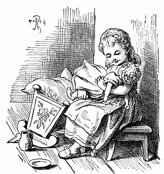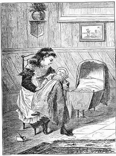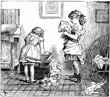 Away went the mice into the house and upstairs, where Mrs. Posset scolded, and brushed, and washed, and wiped and mended to an alarming extent. The trunk in which Nibble's clothes were packed had not yet arrived, so the young gentleman had to wait after the others were gone down to tea, while Mary, the housemaid, mended his trousers.