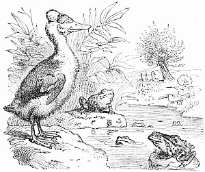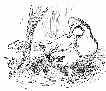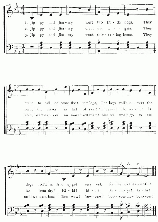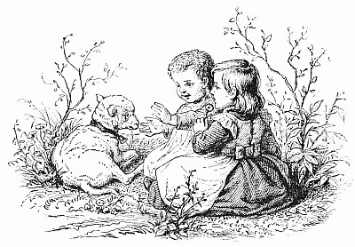 And no wonder she did, for she had on a long thick coat which was completely soaked. But Puffy was very sure about it. She gave a great pull, and Fluff made a scramble, and out she came, knocking Puff down and tumbling on top of her. Well, they were both wet enough when they got up. Just then a very loud and strange noise was heard. At least, it was strange to me, but the children cried "Oh! the rattle, the rattle!" and away they scampered towards the house, as fast as they could go.