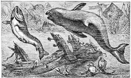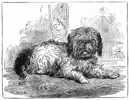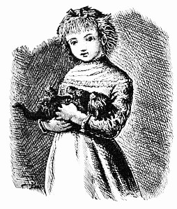 I looked this way and that, but they were nowhere to be seen. At length I caught a glimpse of something blue, among some very thick bushes. I looked closer, and saw a sight that was truly melancholy. Among these bushes stood a huge old wooden trough, which old Jonas had built to receive the water that bubbled out of a spring close by. So the trough was full of water, and this being the case, of course Fluff the unlucky had fallen into it. How she had done it I do not know, but there she was, splashing about in fine style.