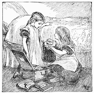 Poor Uncle Jack! he had been working hard all the afternoon, with John and Thomas, (who had come in a cart with the other servants and the trunks and the dogs), clearing away rubbish and unpacking furniture, while Mrs. Posset and the maids were busy in the house. He had been rather glad to have the children out of the way for a little while, but now that it was six o'clock, and tea was laid in the dining-room, and a bright wood fire blazing in the great open fireplace, he began to wonder where his chickens were.