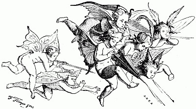 But, children all, I beg your pardon! I am not writing this book for Tommy Tiptop, and I hope that most of the boys who read it will be better than he is. I do want, however, to tell you about some children of whom I am very particularly fond, and whom most of you do not know. These children live in the town of Nomatterwhat, which, as you are probably aware, is in the State of Nomatterwhere, which again is, or really ought to be, one of the United States of America. Perhaps these are Indian names; similarly, perhaps they are not. There are five of these children, and I call them my Five Mice; and the queer house that they live in I call the Mouse-trap. They are such funny children! I watch them sometimes all day long, their pranks are so amusing; and then when night comes, I slide down a moonbeam and sit by their pillows, and tell them stories and sing them songs. Ah! they like that, you may believe! And you all shall hear the stories and songs too, if you like, for I will write them down. So now, children all, listen! in America, Jennie and Johnny; in France, Marie and Emil; in Germany, Gretchen and Hans; in Italy, Tita and Nanni; in Kamschatka, Patchko and Tinka. Listen all, great and small, to the old