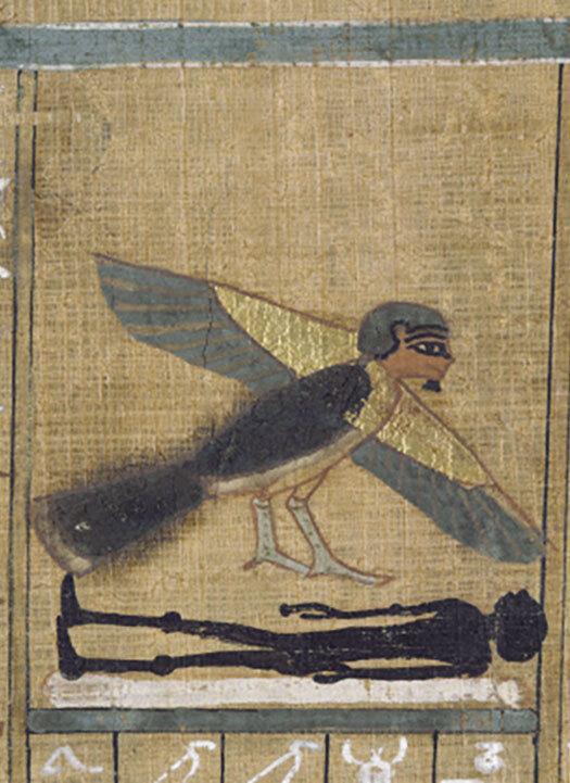Душа Ба парит над мертвым телом. Ок. 1550 до н. э. – ок. 1077 до н. э. Фрагмент из «Книги мертвых» Техенены, Новое царство. Лувр, Париж