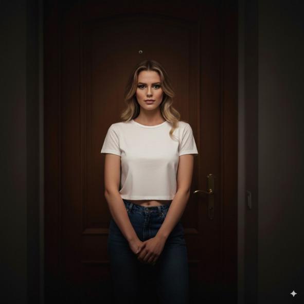 Мой взгляд скользит ниже. Простая футболка в обтяжку, под которой четко угадываются контуры небольшой, но высокой груди. Соски напряглись от холода или волнения. Тонкая талия, которую хочется обхватить ладонями. Джинсы, идеально сидящие на округлых, спортивных бедрах. Ноги длинные. Вся фигура — ладная, крепкая, без искусственной хрупкости. Она дышит часто, отчего ее грудь заметно вздымается. И вот эта деталь — простое, естественное движение — почему-то цепляет меня сильнее, чем все продуманные декольте моих обычных гостий.