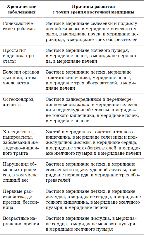 С помощью небольшой таблицы вы можете оценить причины возникновения различных болезней с точки зрения восточной медицины.