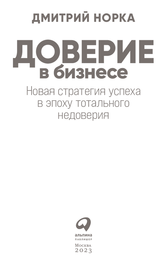 Мой друг и коллега Дмитрий Норка — профессионал высочайшего уровня, который обладает большим набором компетенций, но одна из основных— объяснять сложные вещи просто. В книге «Доверие в бизнесе» ему это снова удалось. Доверьтесь автору, погрузитесь в чтение, воплотите его идеи в жизнь и следите за тем, как это будет способствовать развитию вашего бизнеса.