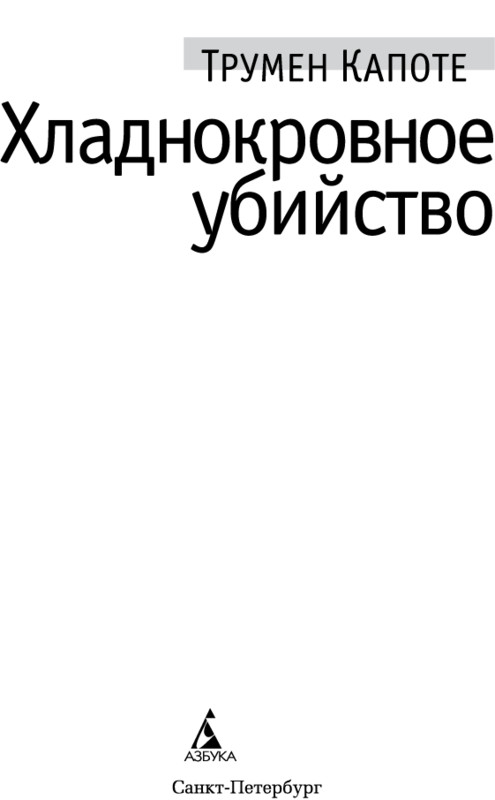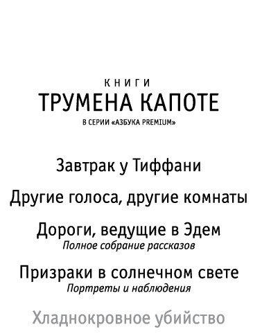 Хладнокровное убийство : роман / Трумен Капоте ; пер. с англ. М. Гальпериной. — СПб. : Азбука, Азбука-Аттикус, 2017. (Азбука Premium).