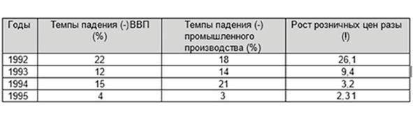 Данные таблицы наглядно демонстрируют провал политики «шоковой терапии» в РФ.