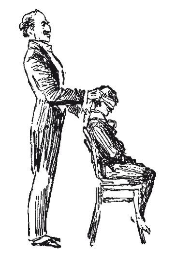 Покончив с этими непонятными для меня приготовлениями, фокусник стал делать возле лица мальчика странные движения руками, словно поглаживая его, не прикасаясь.