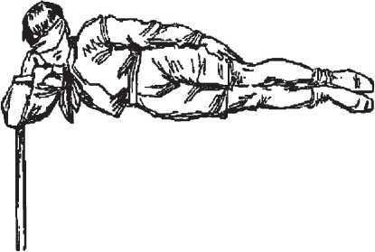 Он вынес на середину сцены стойку, состоящую из нижней доски и укрепленной в ней отвесно палки, примерно в рост человека. Пододвинув к палке стул, он знаком приказал мальчику опереться правой рукой о верхний конец палки, достал еще одну палку, подставил ее под левую руку, а под ноги стул. Мальчик повис в воздухе, опираясь на три точки: две палки и стул.